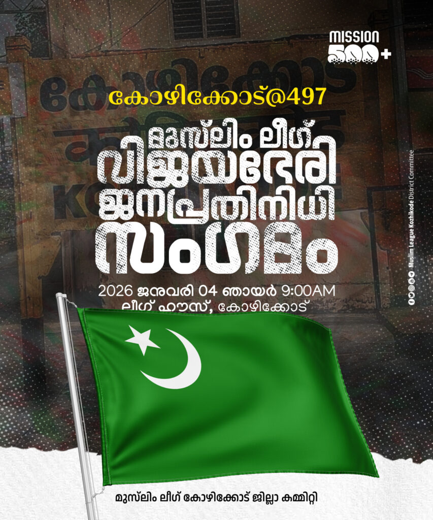 മുസ്ലിം ലീഗ് വിജയഭേരി 2026 ജനുവരി 04 ഞായര് ജനപ്രതിനിധി സംഗമംRegister and download poster withyour own imageRegister